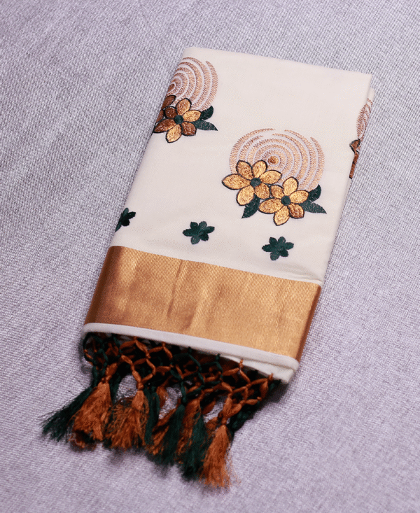 Be the first to review “Elegant Copper Embroidery Cotton Set Saree with Tessil”
