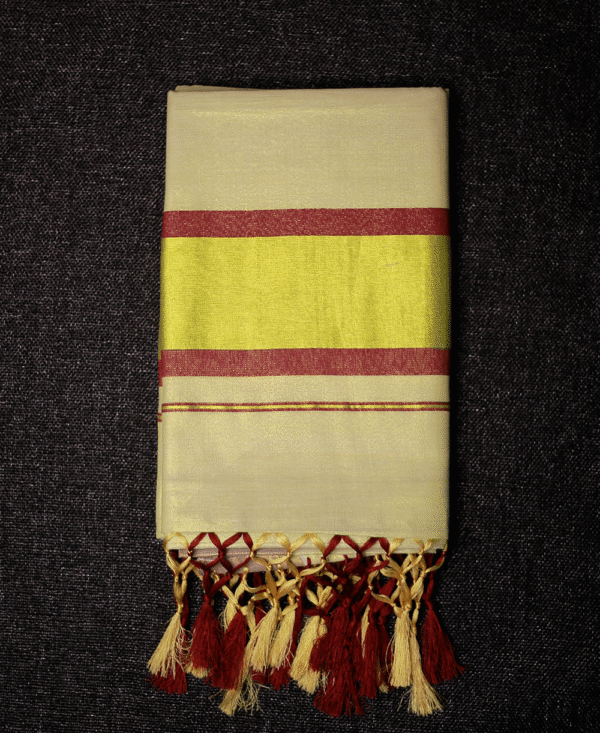 The shimmering texture of the tissue fabric, paired with the intricate gerry border, gives you a refined and radiant look effortlessly.