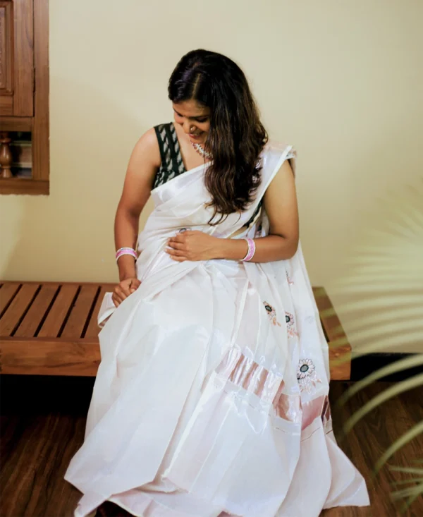 The 3-inch rose pink zari border adds a rich and refined touch, enhancing its overall appeal. Measuring 6 meters in length, it comes with a matching blouse piece to complete your look.